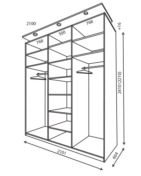 * Цена указана за шкаф-купе размером 210,1*221*60,4см.
