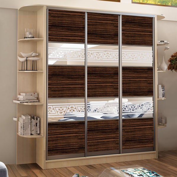 Базовая цена включает в себя корпус из ДСП 16мм 2,3*2,1*0,45м, комплектацию дверей из алюминиевого профиля Lux (цвет серебро), наполнение дверей: ЛДСП 16 мм. Угловое окончание и карниз не входит в комплект.