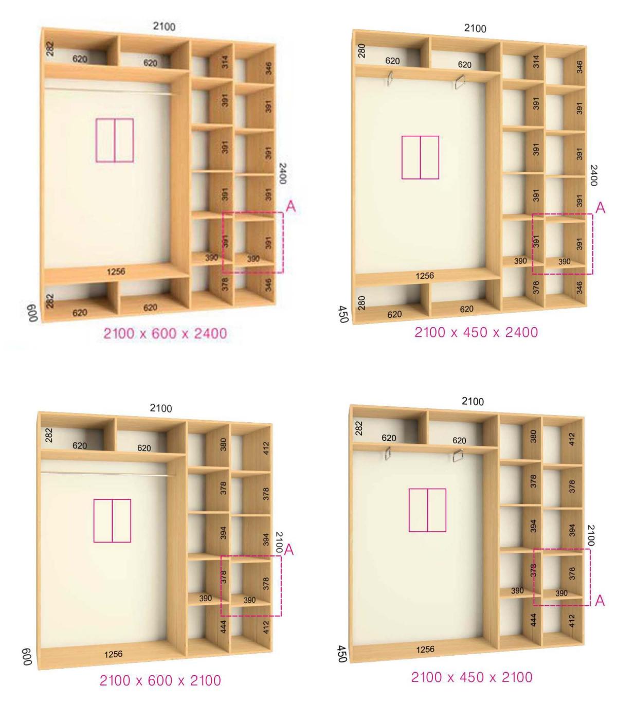 *Базовая цена включает в себя корпус из ЛДСП Krono 16мм 2,1*2,1*0,45м, комплектацию дверей из алюминиевого профиля цвет серебро, наполнение дверей: ЛДСП 16 мм. Угловое окончание и карниз не входит в стоимость.