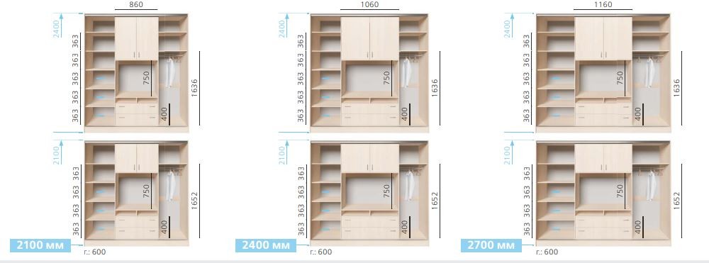 Шкаф-купе изготавливается в стандартных размерах: