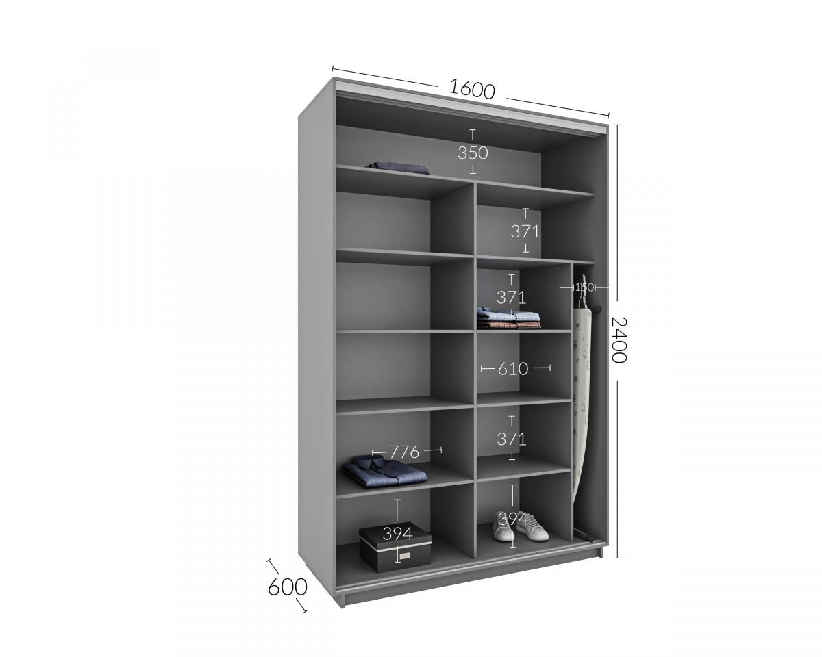 Базовая цена включает в себя корпус из ДСП 16мм с размерами на выбор, комплектацию дверей из алюминиевого профиля цвет серебро, наполнение дверей: ЛДСП 16 мм.
