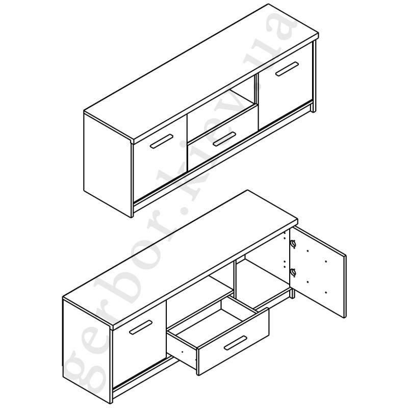 Дно шухляд та задня стінка: ДВП 3мм. На задній стінці передбачено технічні отвори для дротів